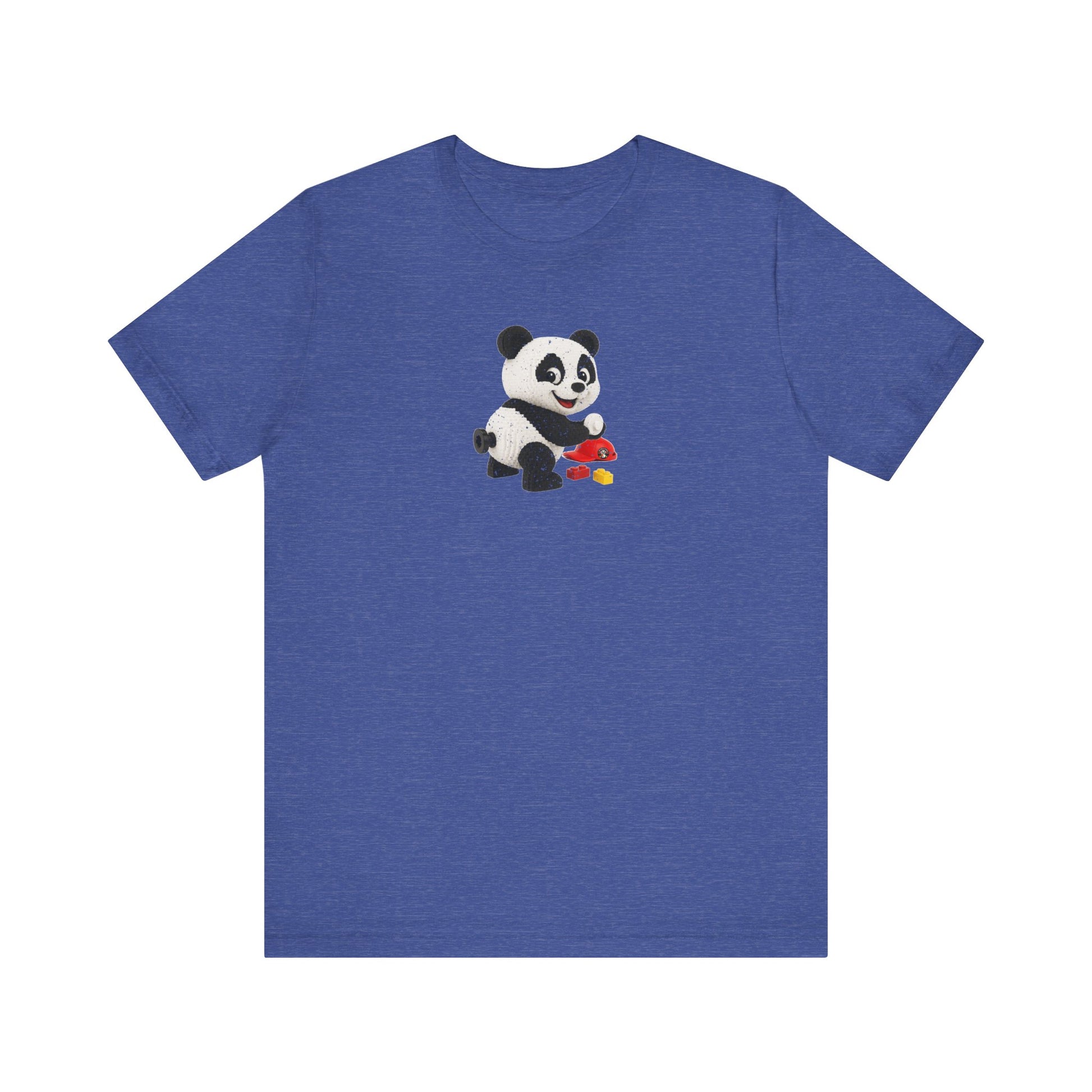 Soft, breathable jersey with a small, hand-drawn panda illustration centered on the chest. Lightweight Airlume combed cotton feels gentle against skin and layers easily under jackets or over long sleeves. The ribbed crew neck, shoulder tape and side seams keep the tee looking crisp after many wears. The playful panda holding mushrooms brings a quiet, whimsical touch—wear it on relaxed weekends, nature walks, or casual meetups to add a subtle, sweet detail to everyday outfits.